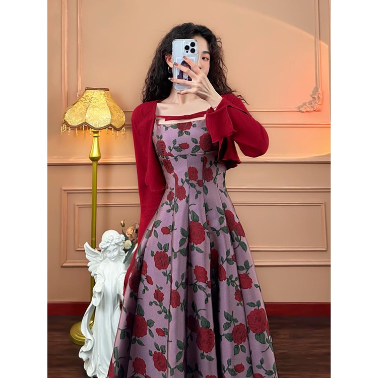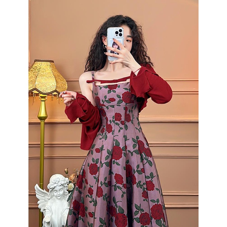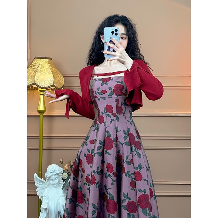 Detail Gaun Wanita Pinggang Tinggi, Gaun Wanita Retro Gaya Perancis, Pakaian Luar Musim Panas, Kardigan Ram