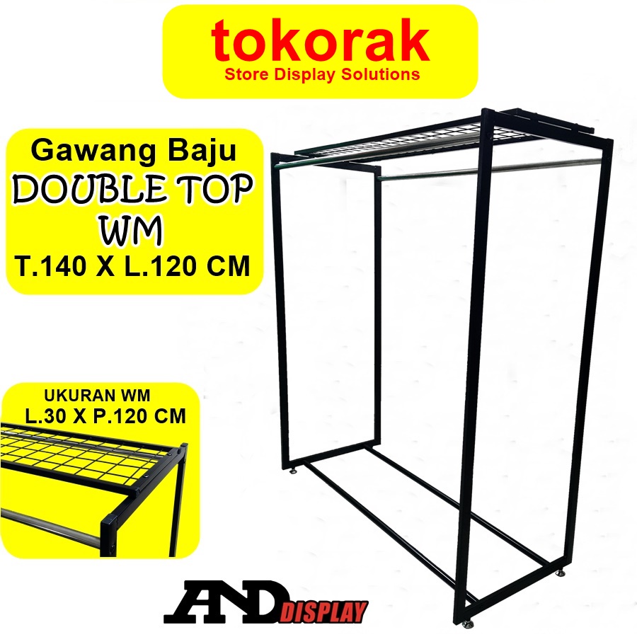 GAWANG BAJU DOBLE TOP + WM RAK BESI GANTUNGAN 2 SISI RAM STAND HANGER