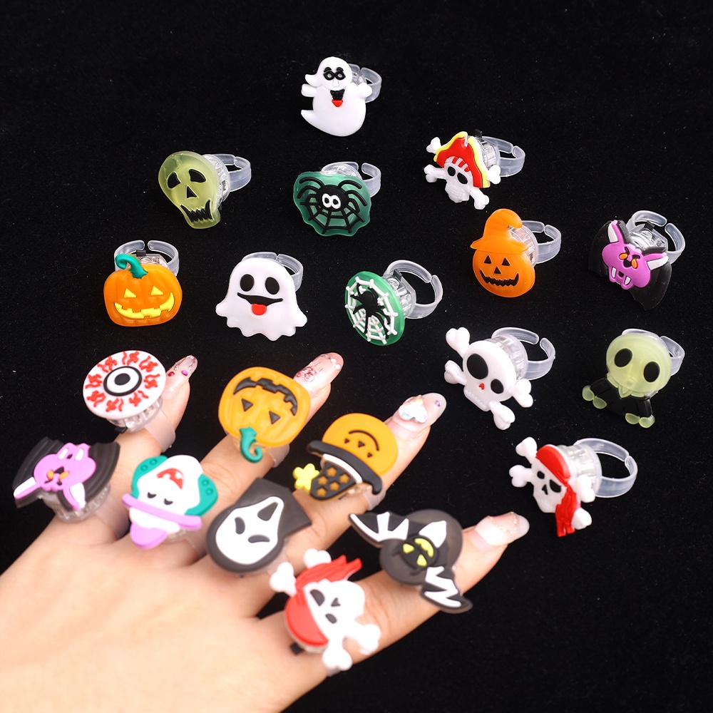Souvenir & Party Supplies > Perlengkapan Pesta > Perlengkapan Pesta Lainnya > Gaya Acak 10pcs Cosplay Hadiah Perlengkapan Pesta Kreatif Adjustable Terbuka LED Flash Jari Cincin Halloween Dekorasi Lucu Halloween Labu Hantu Tengkorak Bercahaya Rings Untuk Anak