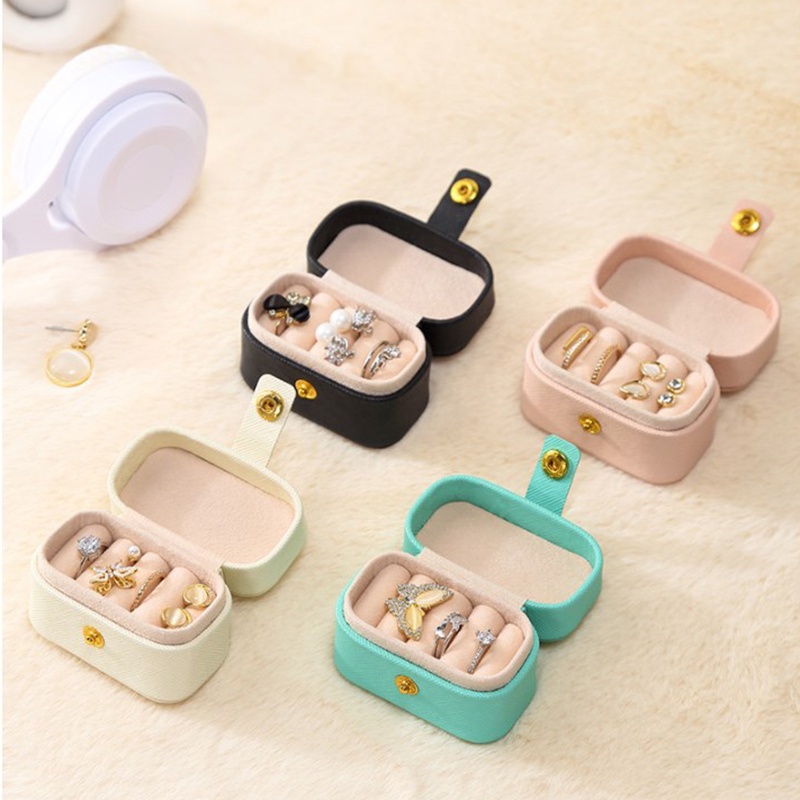 Perlengkapan Rumah > Organizer Rumah > Organizer Perhiasan > Gaya Baru Kotak Cincin PU Mini Lucu Portabel Organizer Perhiasan Ear Studs Rings Storage Box