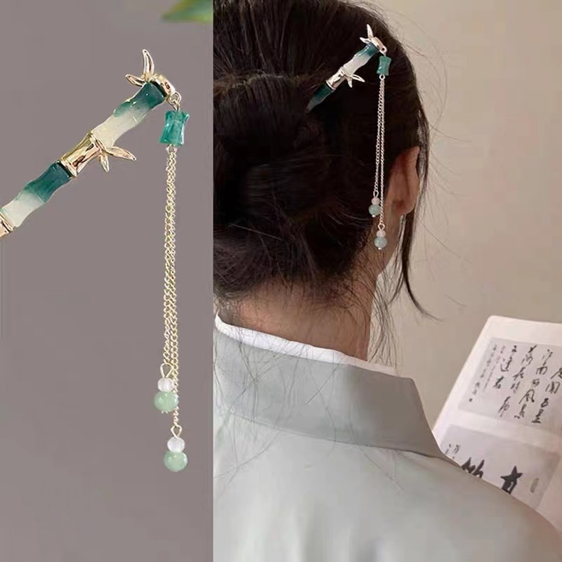 Detail Gaya Cina Bambu Simpul Rumbai Jepit Rambut Gaya Kuno Jepit Rambut high-end Perasaan Belakang Kepala Gaya Cina cheongsam Hanfu Aksesoris Rambut