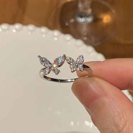 Detail Gaya Jepang Korea Baru Sederhana Manis Kupu-Kupu Berlian Imitasi Temperamen Cincin Terbuka Elegan
