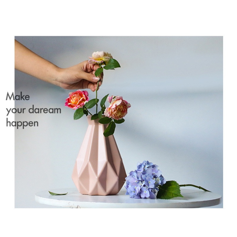 Detail ღ Gaya Nordic Geometris Vas Resin Modern Bunga Pot Minimalis Putih Pink Vas Rumah Ruang Tamu Dekorasi Ornamen Bunga Pengaturan