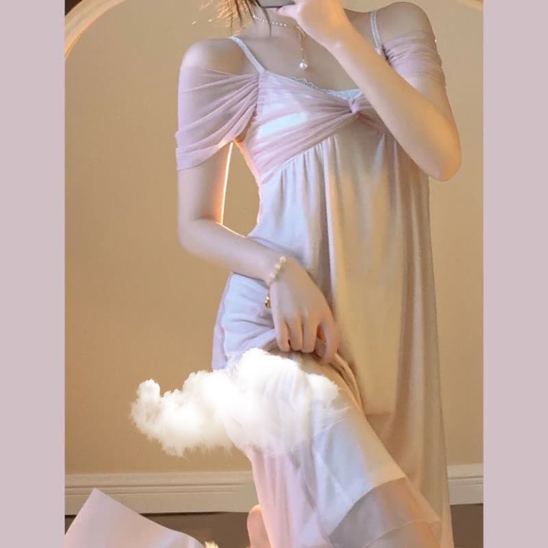 Pakaian Wanita > Pakaian Tidur & Piyama > Daster > Gaya putri keinginan murni Prancis yang manis dan manis dapat dikenakan di luar piyama renda musim p