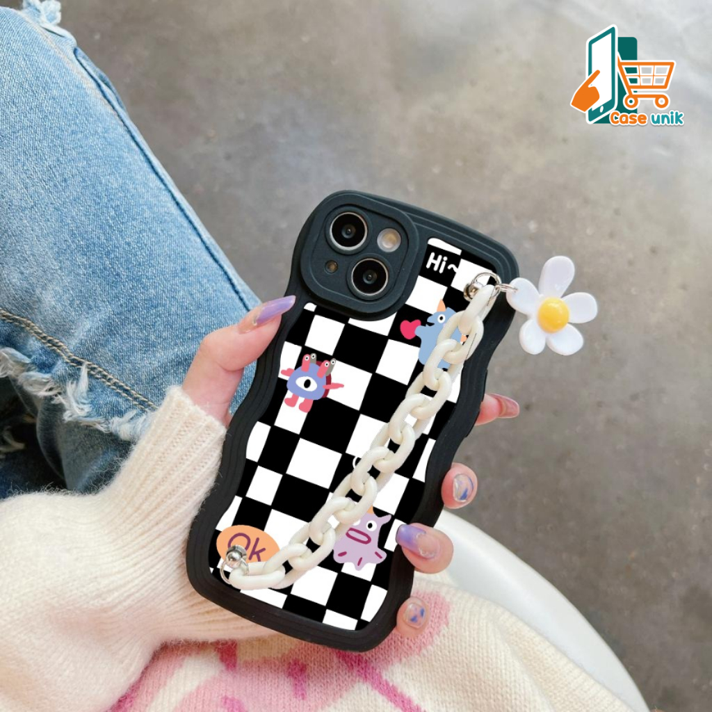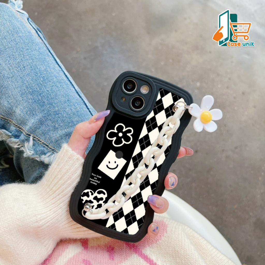 CS6190 softcase gelombang rantai bunga karakter bahan silikon model pinggiran bergelombang anti shockproof dengan rantai bunga metode pemasangan mur&baut menggunakan mesin jadi kokoh dan anti putus gambar karakter anti luntur dan tahan air tahan banting cocok di sesuaikan dengan outfit sehari hari