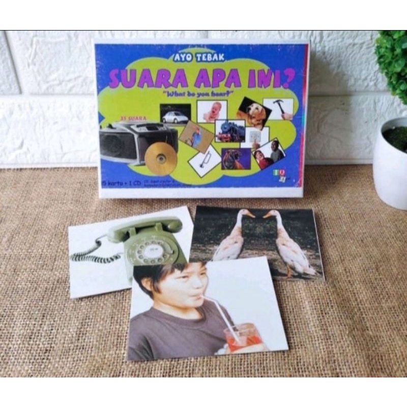Spesifikasi: 1. Paket berisikan 1 buah CD yang bisa di pasang di laptop atau perangkat lain untuk memutar CD yang berisikan suara-suara sesuai dengan gambar yang disertakan dalam paket. 2. Gambar yang sesuai dengan suara yang ada di CD, berjumlah 35 gambar.