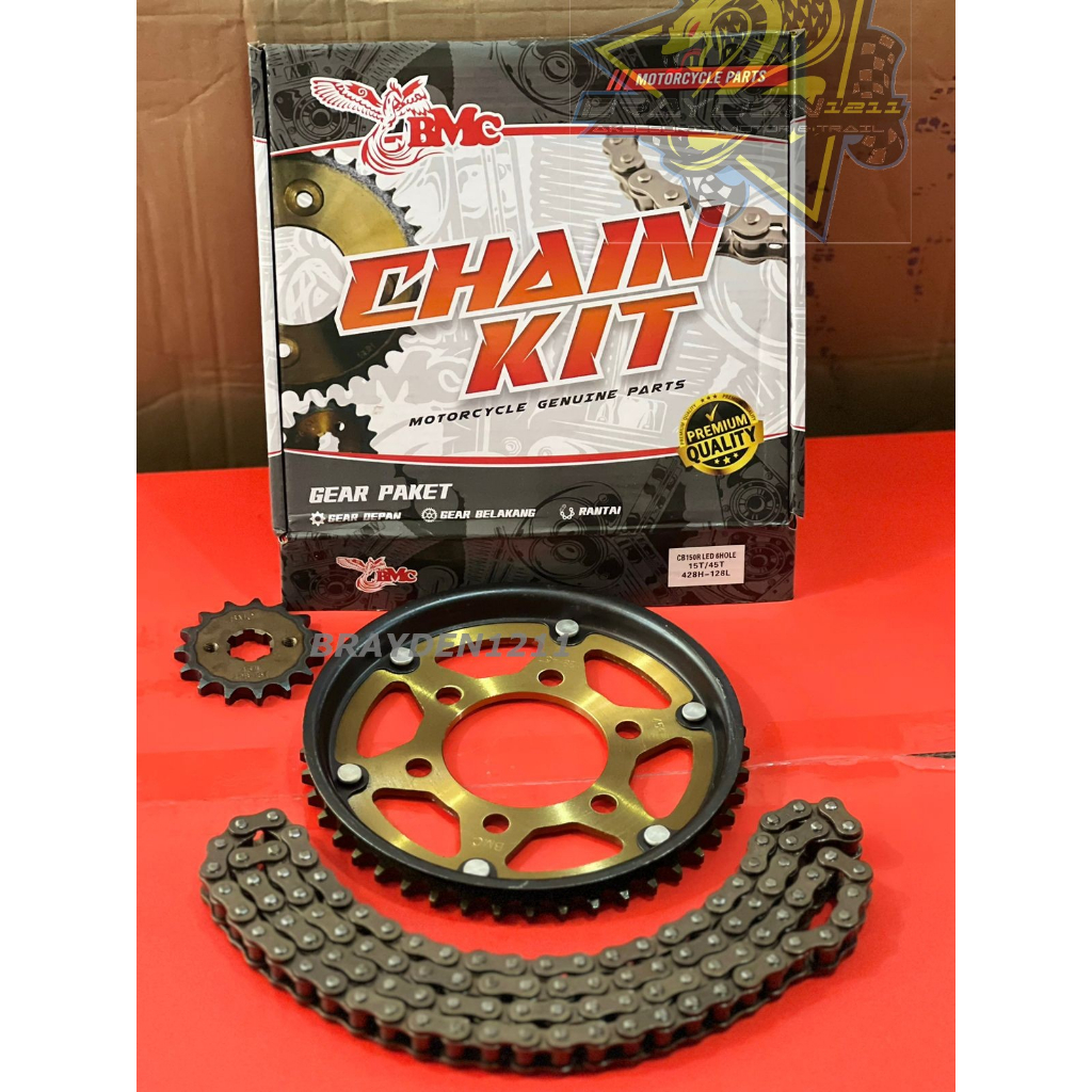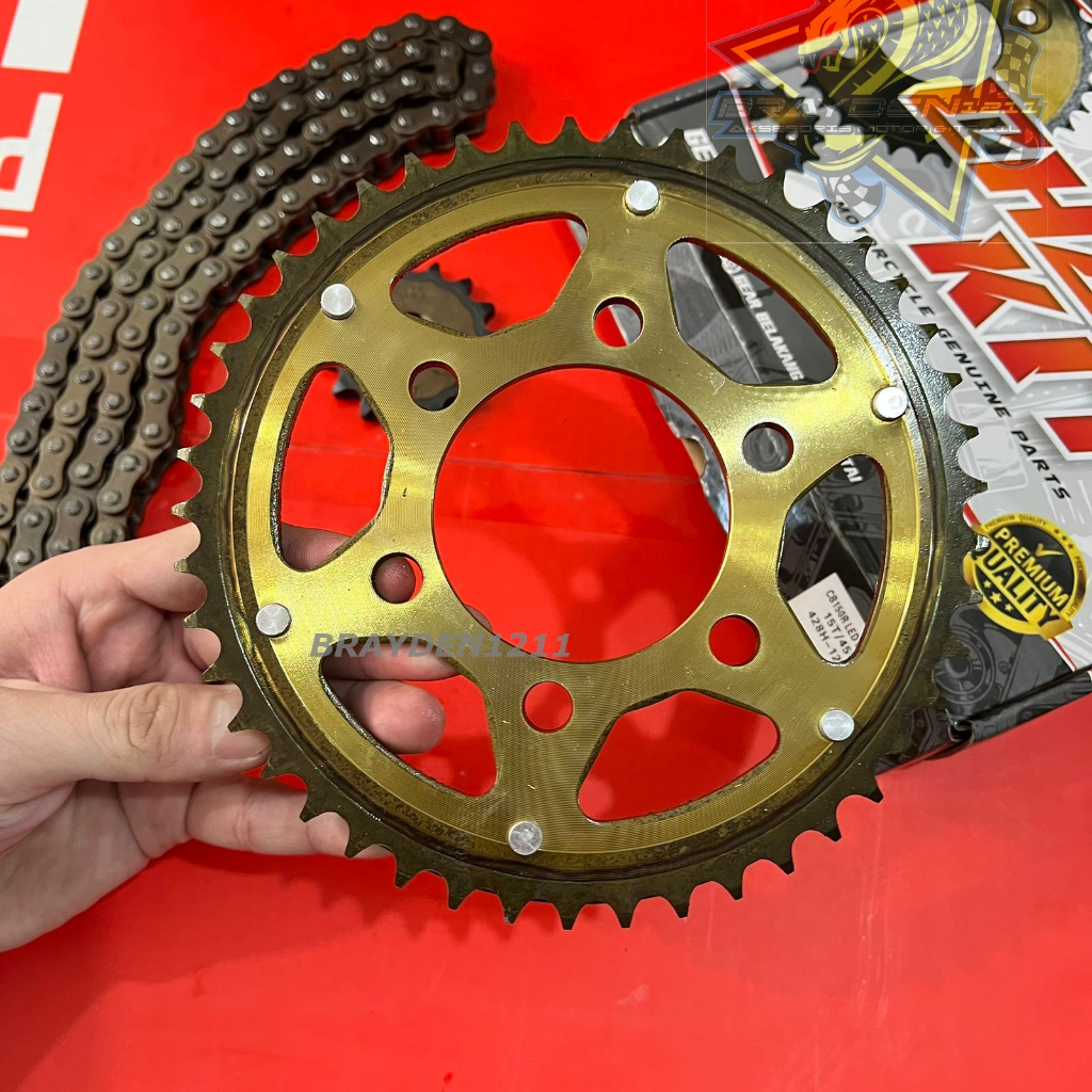 KUALITAS JOSS HARGA SET DEPAN BELAKANG PLUS RANTAI CARA CEK GEAR BLAKANG KM LUBANG BAUT NYA 6 UD PASTI COCOK DAN BISA COCOOK UNTUK CB150LED UKURAN GEAR DEPAN 15T UKURAN GEAR BELAKANG 45T UKURAN RANTAI 428H PANJANG 128L