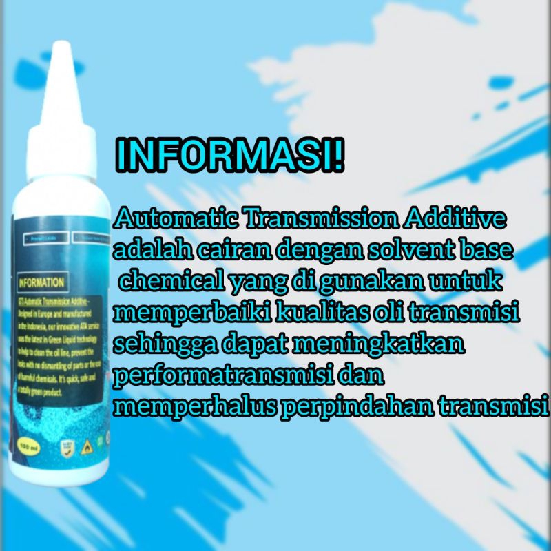 Automatic Transmission Additive adalah cairan dengan solvent base chemical yang digunakan untuk memperbaiki kualitas oli transmisi sehingga dapat meningkatkan performa transmisi dan memperhalus perpindahan transmisi.