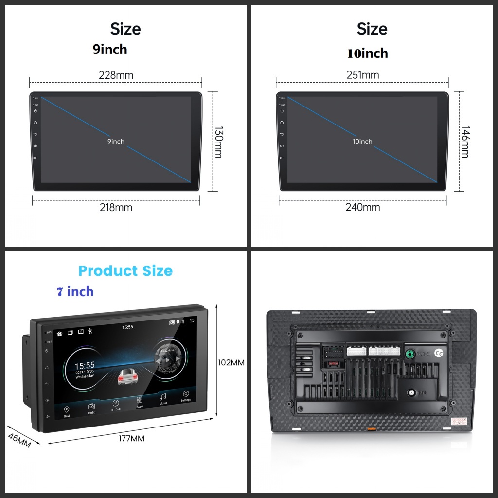 Fitur: 1. Radio (FM) 2. Mendukung membaca USB flash drive (audio/video/gambar) 3. Fungsi AUX belakang 4. Fungsi Bluetooth 5. Output audio RCA dapat dihubungkan ke subwoofer 6. Membalikkan fungsi input video 7. Masukan video 8. Fungsi pembelajaran roda kemudi mobil asli 9. Fungsi input cam dasbor 10. Internet WIFI 11. Navigasi GPS 12. Interkoneksi ponsel (untuk iPhone/Android) 13. Aplikasi dapat diinstal 14. 21 opsi tema
