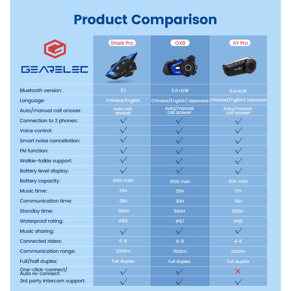 Detail GEARELEC GX8 Helm Sepeda Motor Bluetooth Intercom Headset 8-Rider 1500m Range BT 5.1 Sistem Komunikasi Nirkabel Interphone dengan Radio FM EQ Music Sharing