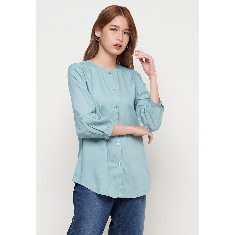 - Blouse berbahan katun rayon - Desain warna hijau - Kerah bulat dengan kancing lengan - Teksture bahan ringan dan tidak menerawang - Penutup menggunakan kancing penuh dari atas hingga bawah - Lengan 7/8 dan panjang sepanggul - Reguler fit - Model tinggi 172cm dan menggunakan size S