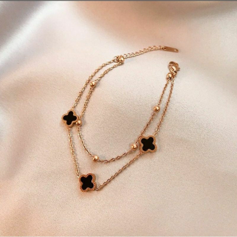 Detail Gelang 2 Layer Titanium Mata Hitam Fashion Clover N06052301