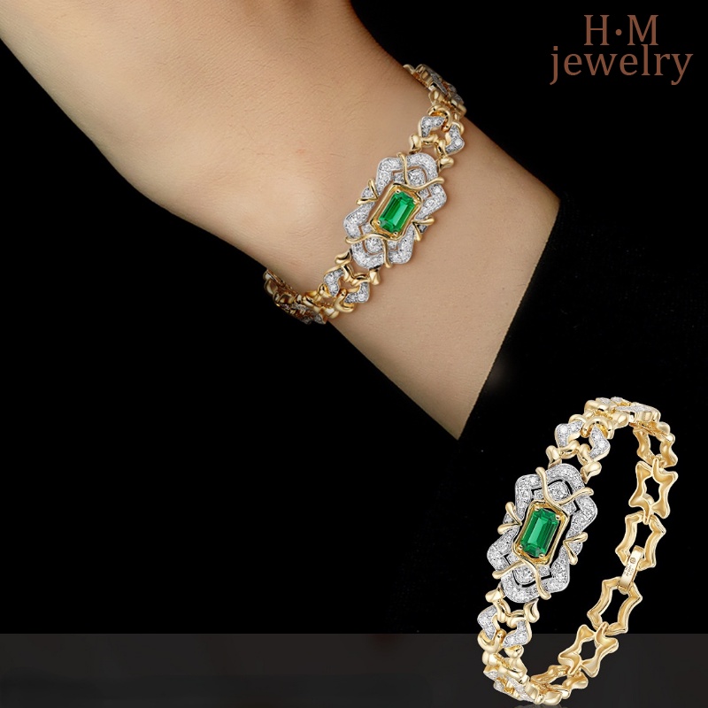 Detail Gelang AAA Zircon Hias Full Zamrud Mewah Antik