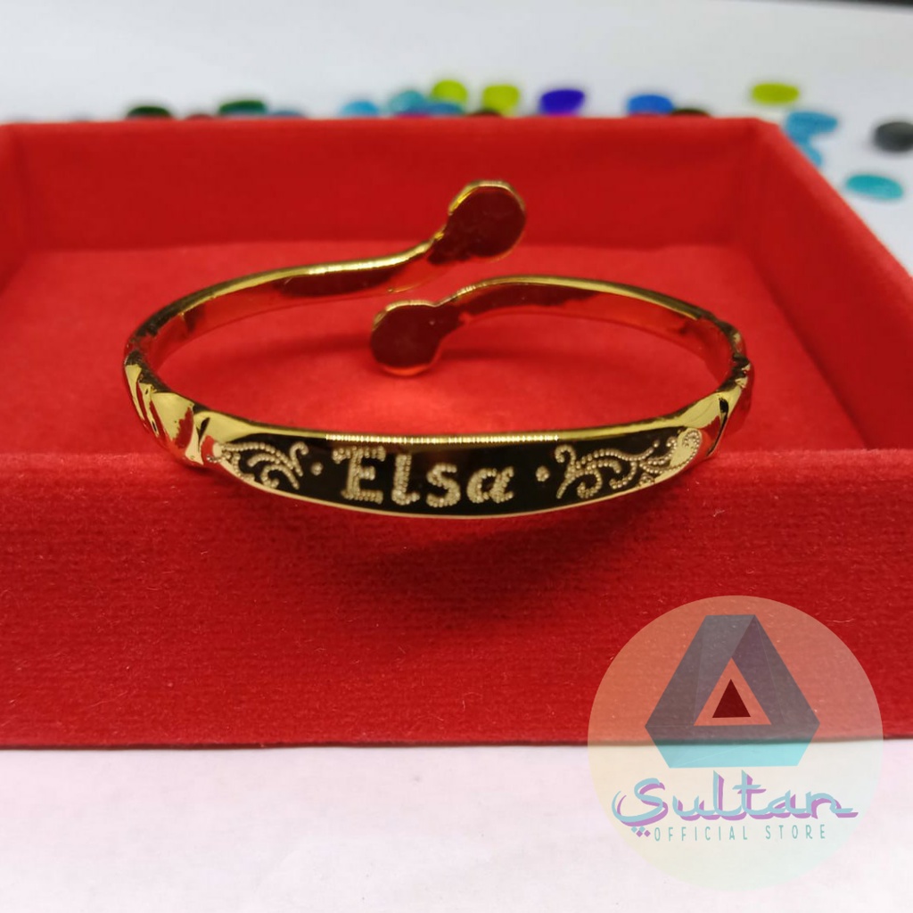 Gelang anak gelang bayi logam kuningan ukir nama lapis emas 24k