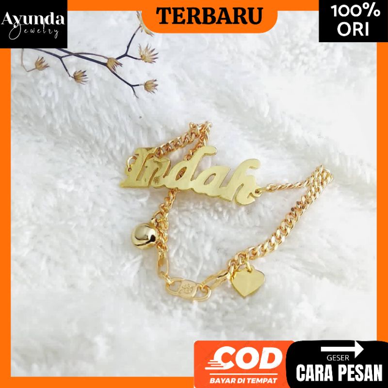 *****AYUNDA JEWELRY***** ** Gelang Titanium Ukiran Nama yang Dapat Di Custome Sesuai Nama Kamu ** Bisa Desain Suka Suka ( Jika Kamu udah Punya Desain Sendiri, Silahkan Kirim foto Melalui Chat ) ** Kami Menyediakan Ratusan Pilihan Font UniQ (Geser Foto Untuk Temukan Model Font Yang Cocok Dengan Kamu) ** Kami Menawarkan Harga Terbaik Dari Toko lain ** Proses Pengerjaan Cepat, Sekitar 3 Hari Kerja ** Setiap 1pcs Kalung Sudah Termasuk: Kalung,Liontin Nama & box ** Bisa Custome Size Untuk Gelang : 👉Ukuran Bayi/Anak , Panjang Mulai 12-13CM 👉Ukuran XS= 14CM 👉Ukuran S= 15-16CM 👉Ukuran M=17-18CM 👉Ukuran L=19CM 👉Ukuran XL=20-22CM