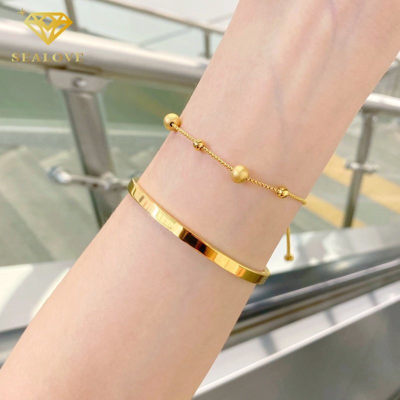 Detail Gelang Bangle Bahan Titanium Warna Emas Gaya Vintage Untuk Wanita