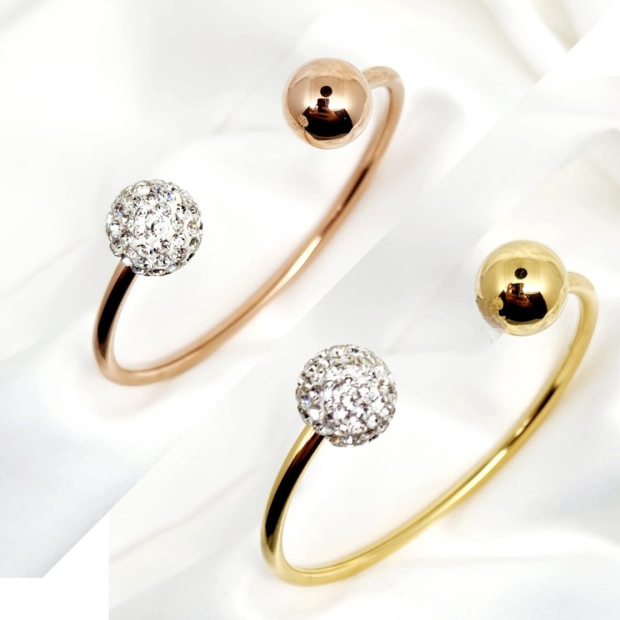 Detail Gelang Bangle Bola Titanium Premium Emas Permata Perhiasan
