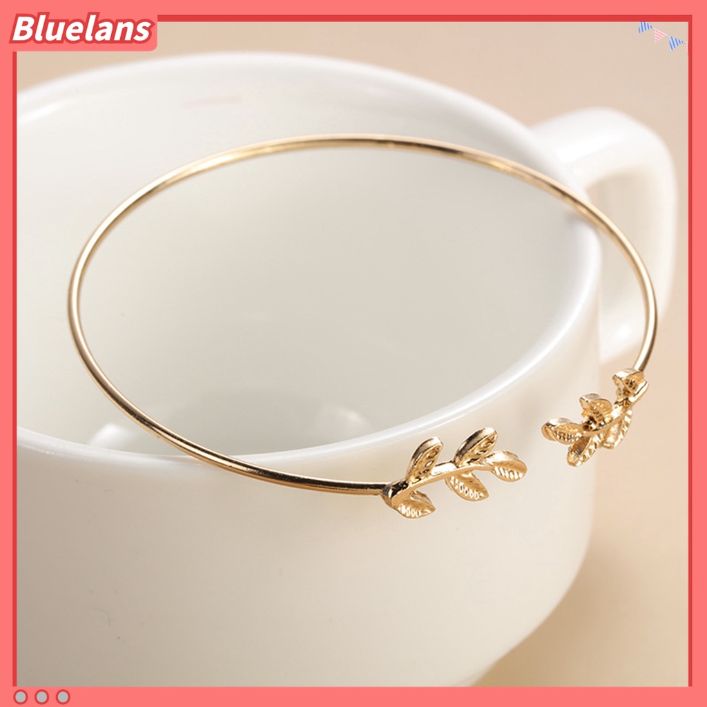 Detail Gelang Bangle Model Terbuka Adjustable Bentuk Daun Untuk Wanita