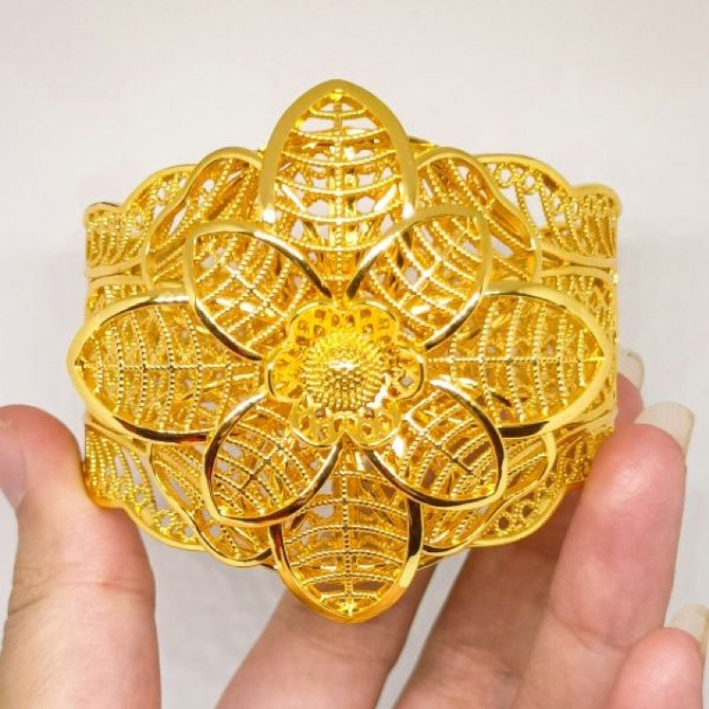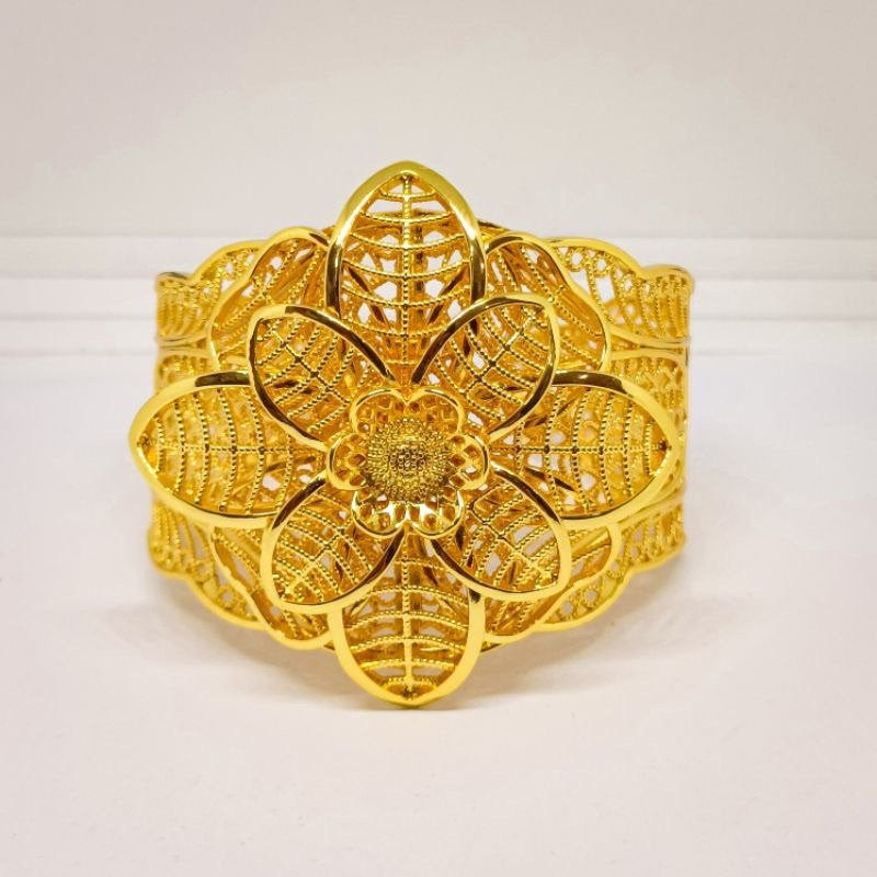 Detail gelang bangle motif bunga matahari cantik Perhiasan lapis Emas 24k gold Dubai