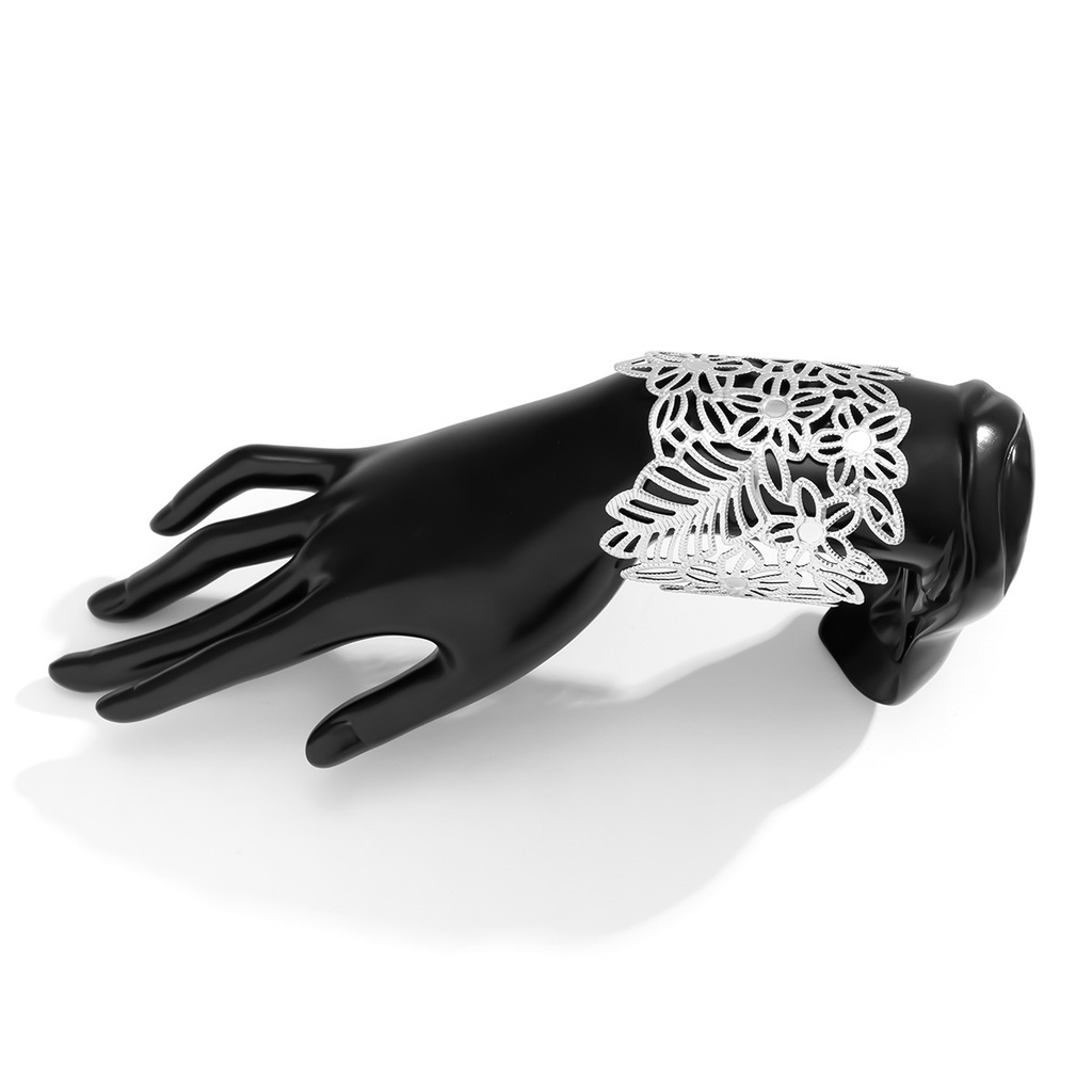 Detail Gelang Bangle Open Desain Geometri Daun Bunga Hollow Bahan Metal Untuk Wanita