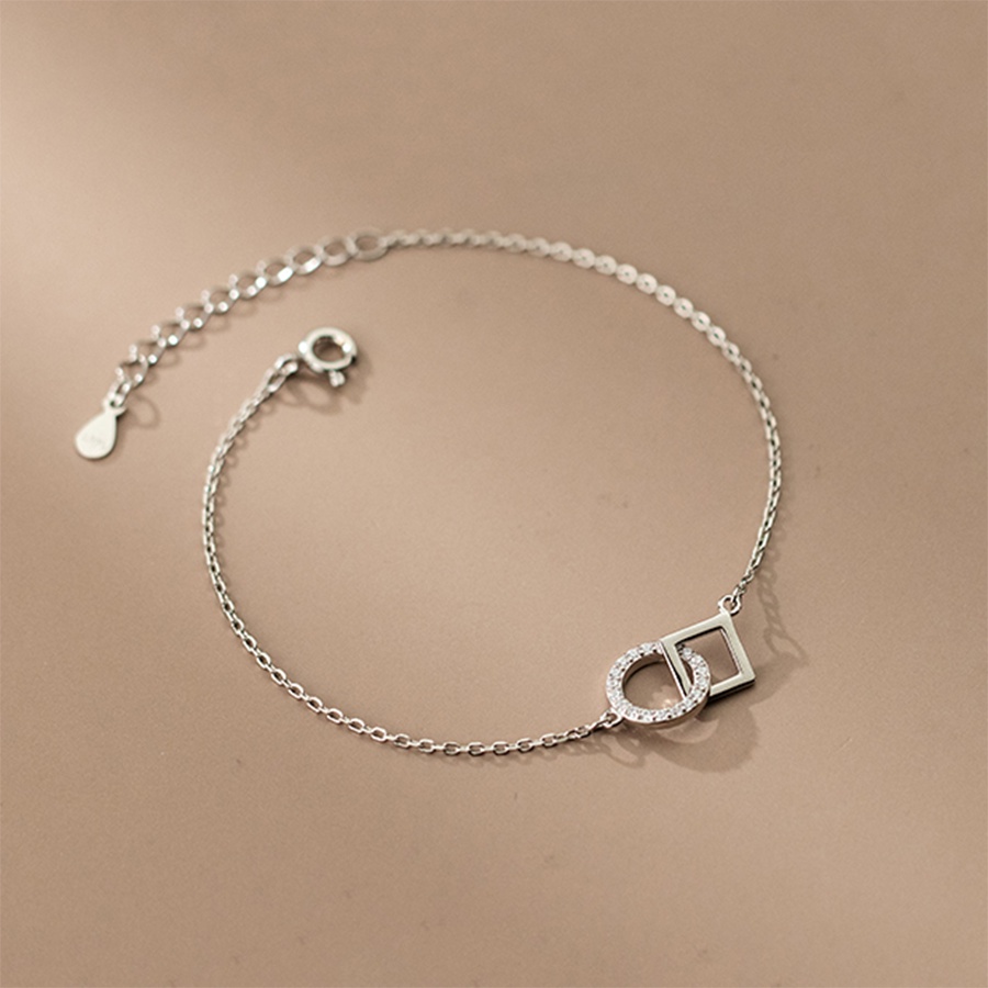 Aksesoris Fashion > Gelang Tangan & Bangle > Gelang Bangle S925 Silver Titanium Steel Bentuk Geometris Aksen Kristal Berlian Untuk Wanita