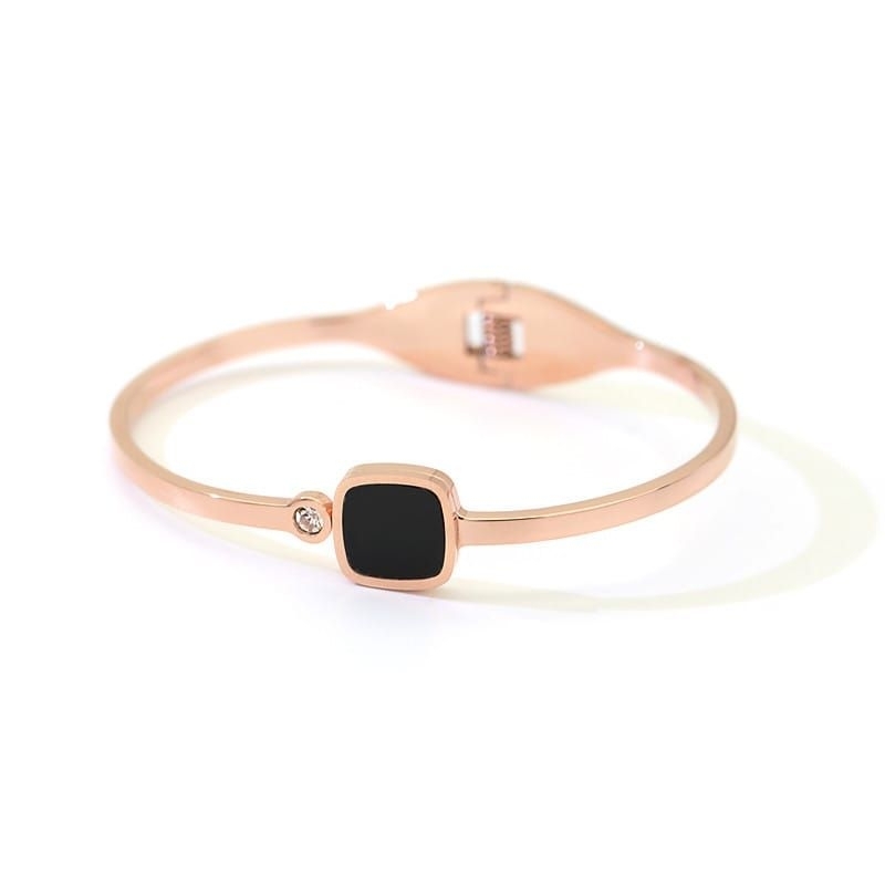 Detail gelang bangle titanium fashion persegi hitam