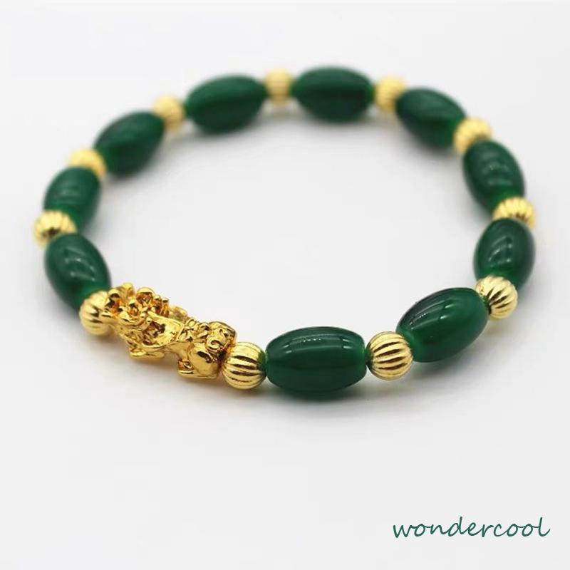 Detail Gelang Batu Akik Giok Oval Wanita Gelang Manik-manik Emas Keras Emas Pixiu Beruntung-Won