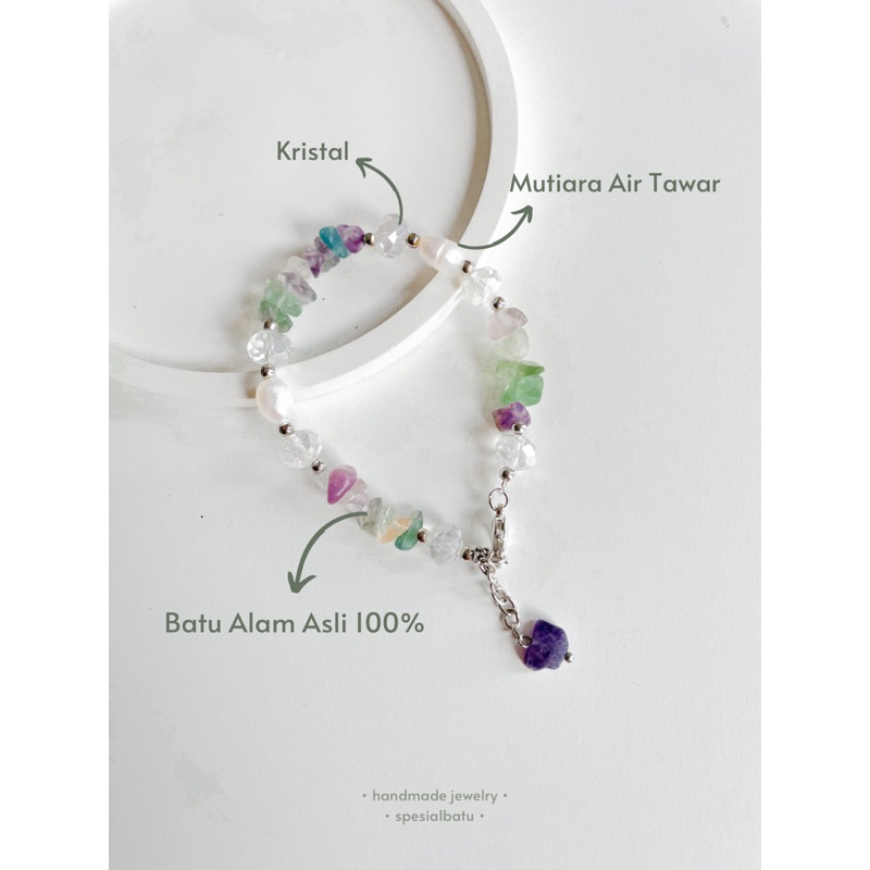 Gelang Batu Pecah Kombinasi Mutiara Air Tawar dan Kristal