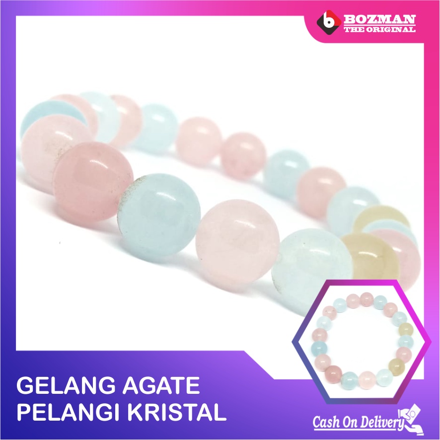 Detail Gelang Batu Pelangi Agate 10mm Model tali Elastis