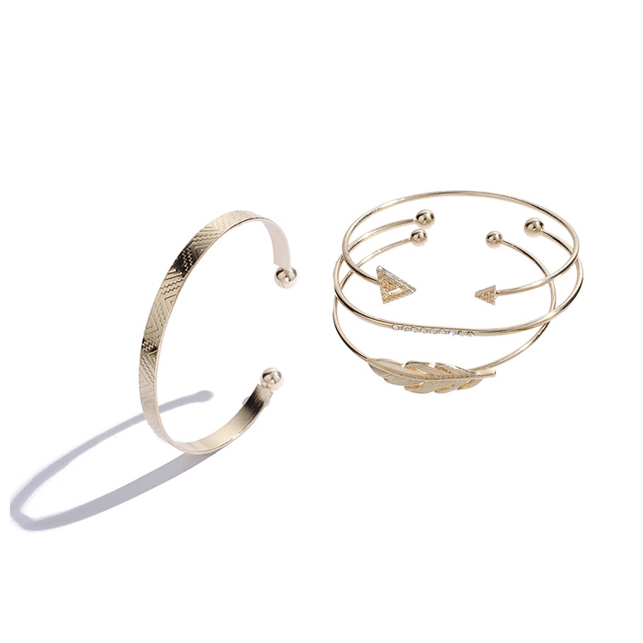 Detail Gelang Berlian Baris Daun Elegan Dan Modis Dengan Pola Retro Menunjuk Segitiga Empat Potong Gelang