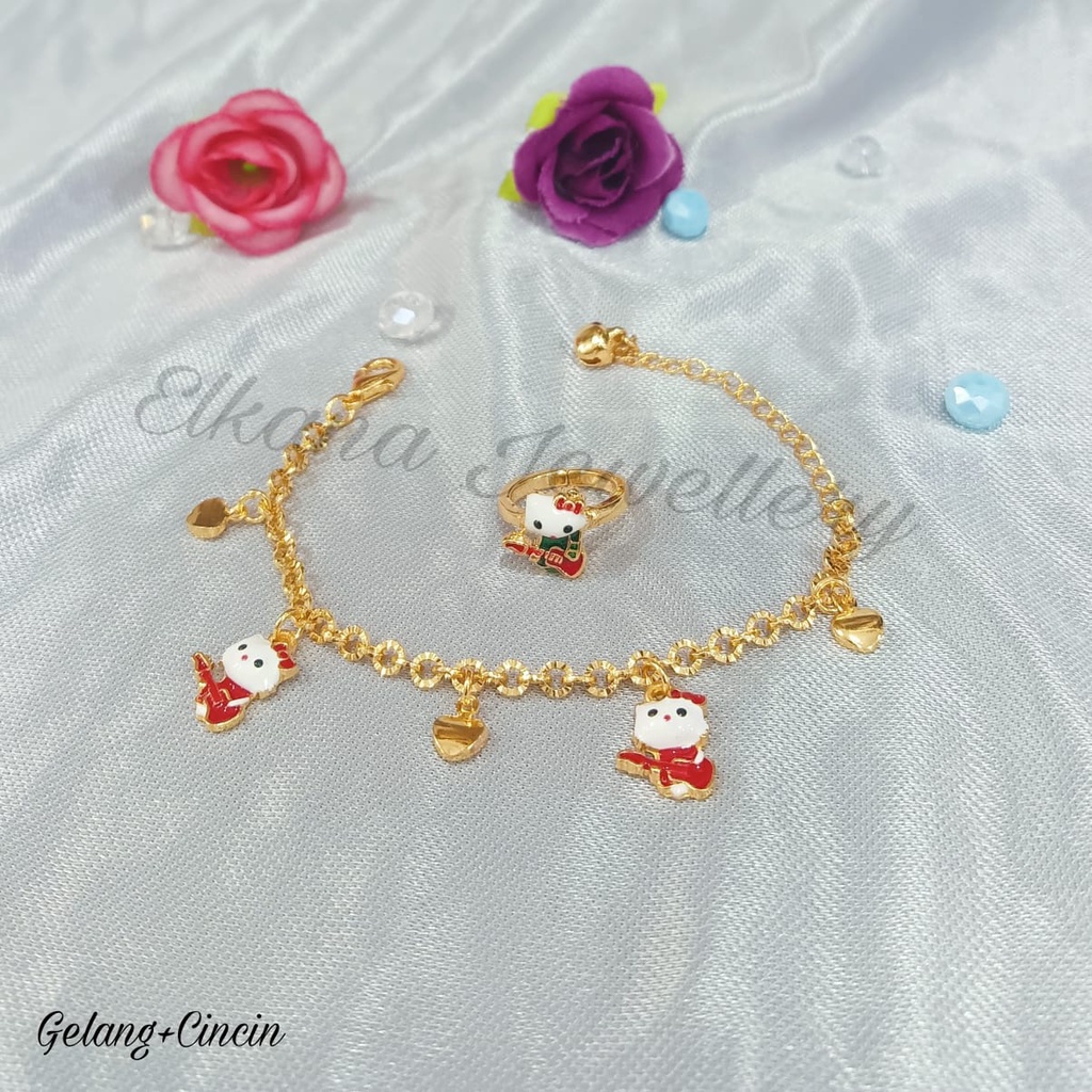 Detail GELANG+CINCIN ANAK JURAI CAT Perhiasan super berkelas fashion korea anti karat dan anti luntur
