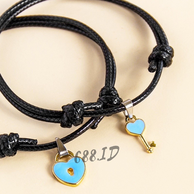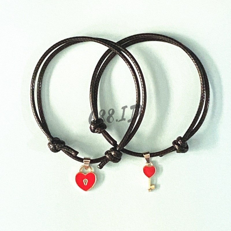 📌Deskripsi Produk : Gelang Couple Pasangan Model terbaru Satu Set 2Pcs Gelang Pasangan Dengan Akssoris Liontin Kunci Hati Cantik Bahan Gelang Tali Lilin Tidak Elastis Dimensi : Diameter 7Cm Panjang Bisa Di Sesuaikan