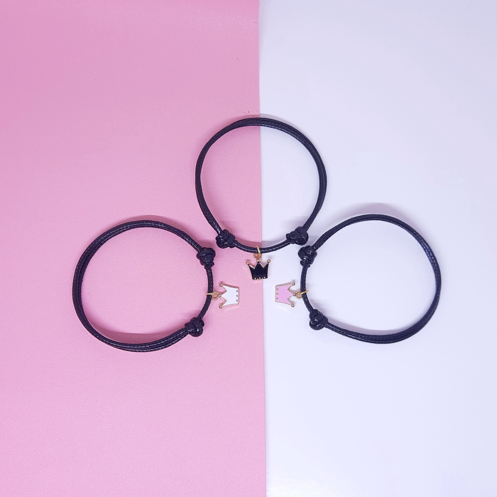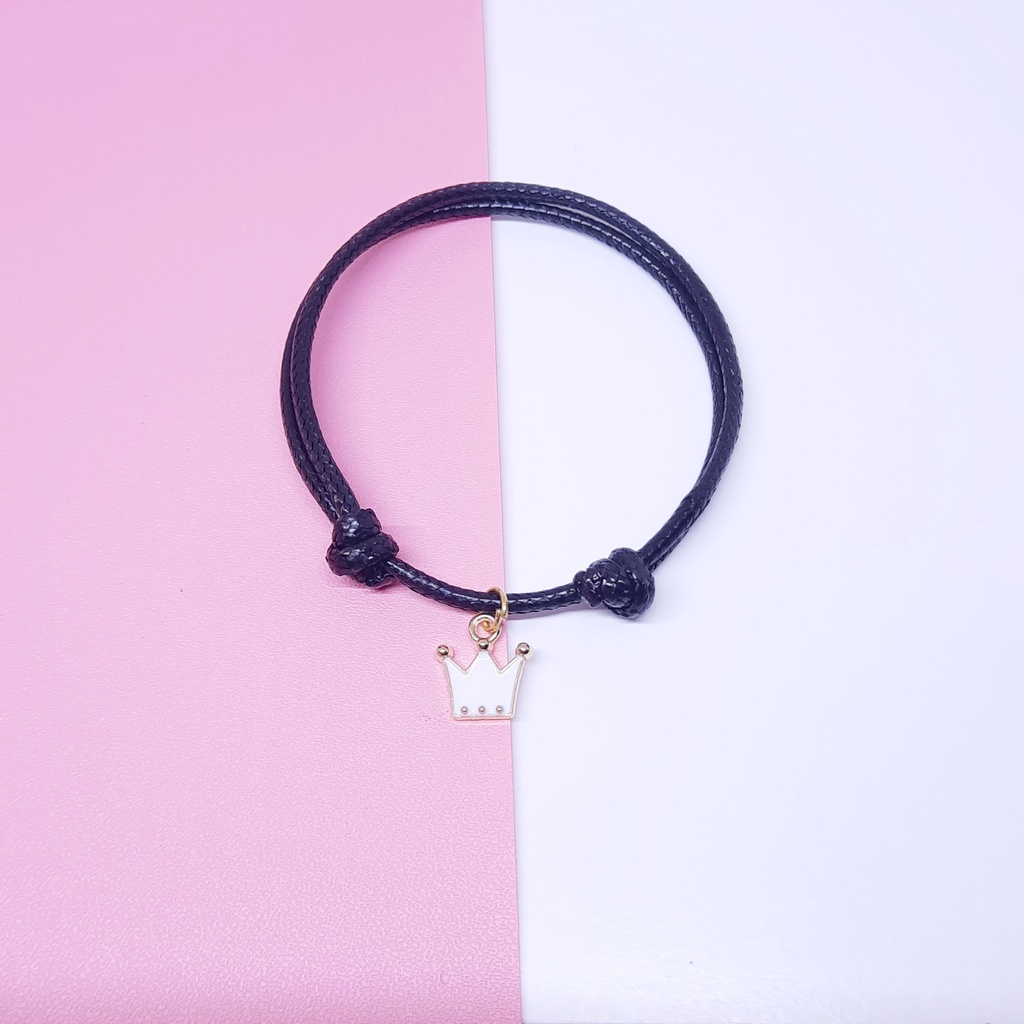 Gelang Couple Aesthetic Korea Pasangan Bestie Pacar Persahabatan Tali Korea Hitam Simple Lucu Murah Liontin Mahkota