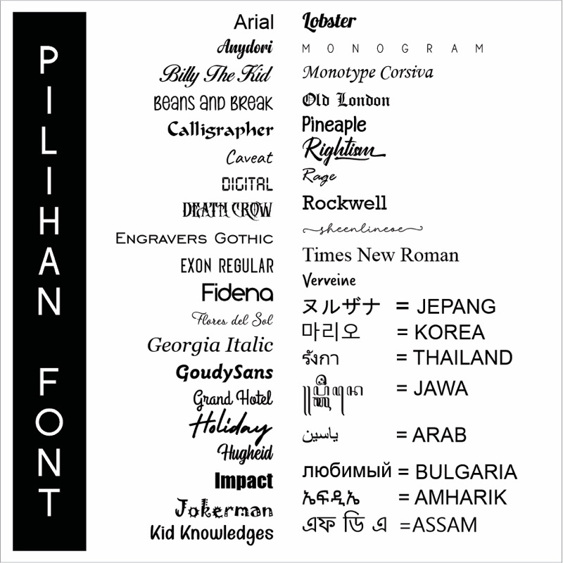 Bebas request : nama/initials/kata/gambar/logo Bebas request : huruf Jepang, Korea,China, Arab atau huruf lainnya ***************************************** CARA ORDER CUSTOM / REQUEST : Setelah klik Masukan Keranjang,klik Checkout, lalu Silahkan tinggalkan pesan dikolom pesan, atau bisa chat langsung ke kami. *****************************************