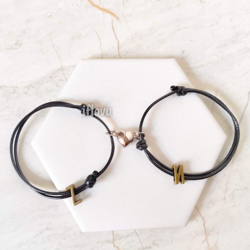 Gelang Couple Magnet Inisial + Box | Gelang Inisial Bronze | Gelang Hitam Couple Anti air | Gelang Couple Pasangan Magnet Love | Gelang tangan pria keren wanita pacar kado gelang couple