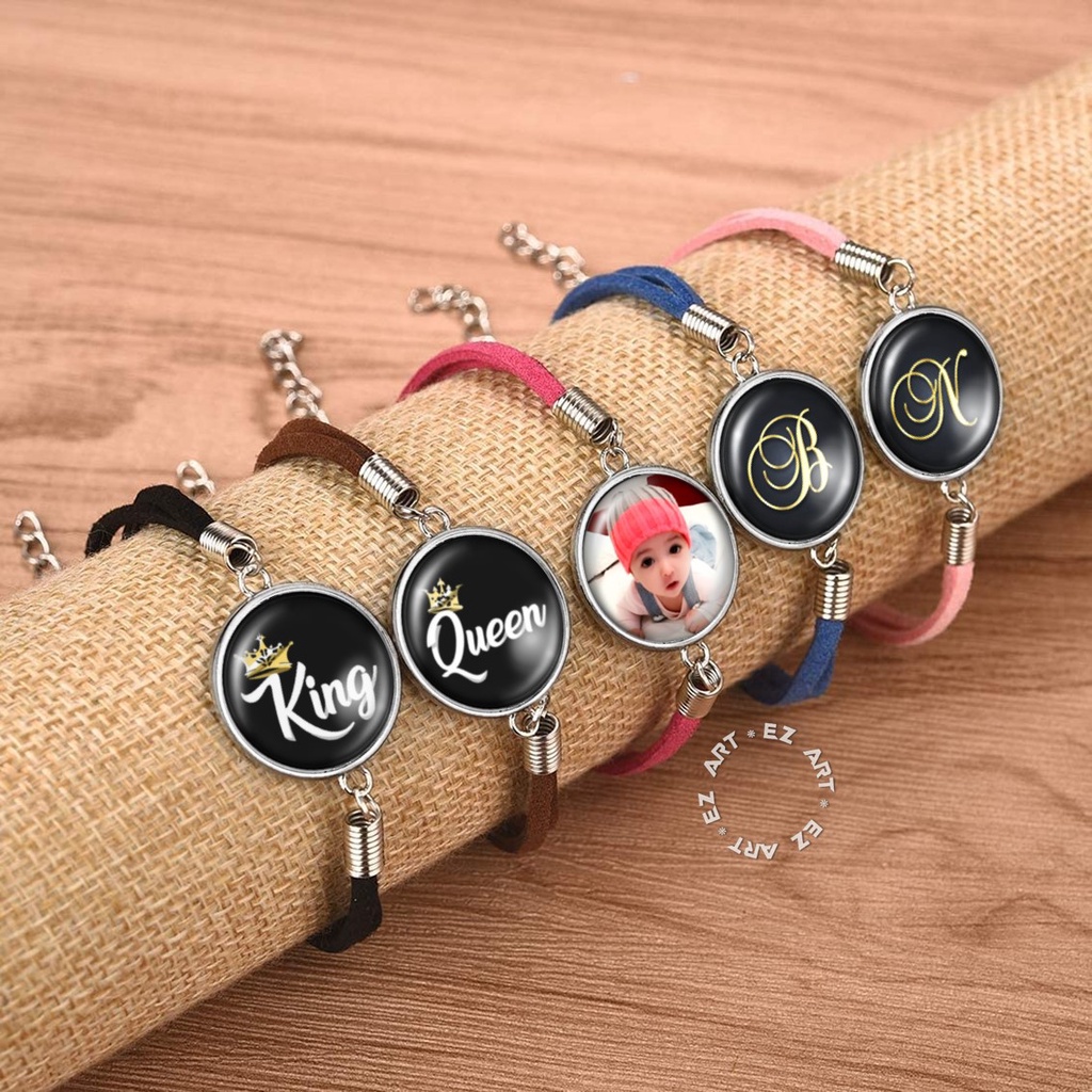 GELANG CUSTOM TALI SUEDE KACA BULAT CEMBUNG FREE REQUEST INISIAL NAMA GAMBAR INISIAL FOTO UNTUK WANITA PRIA