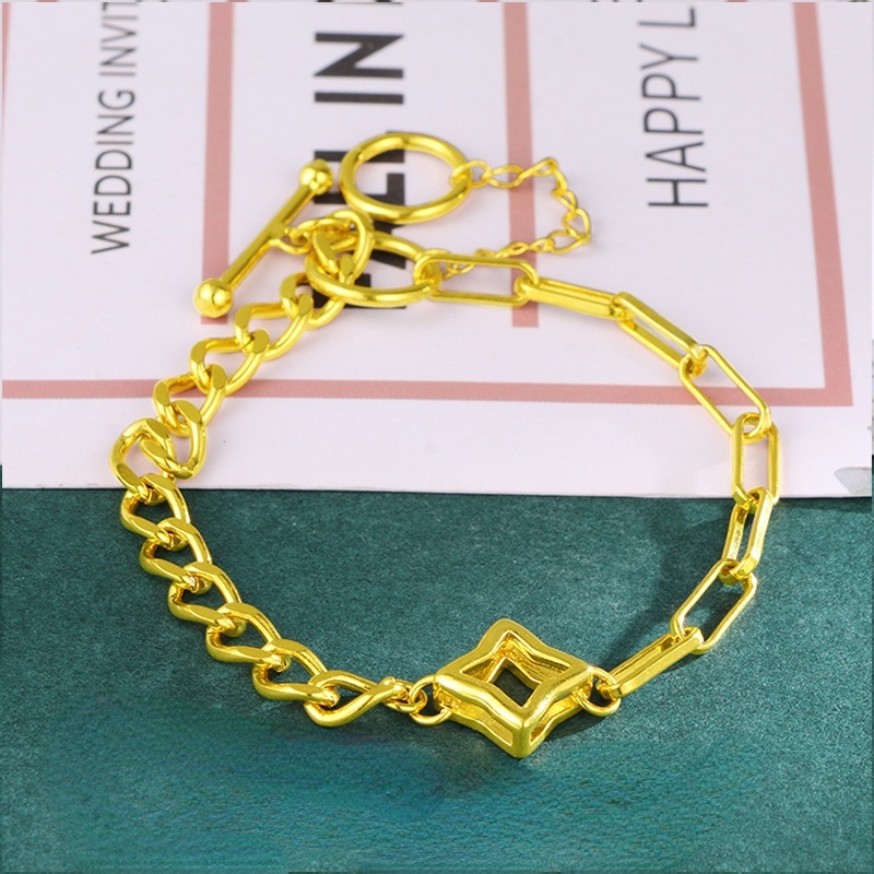Detail Gelang Desain Bintang Geometris Emas Asli Kadar 375Gaya Korea Untuk Wanita