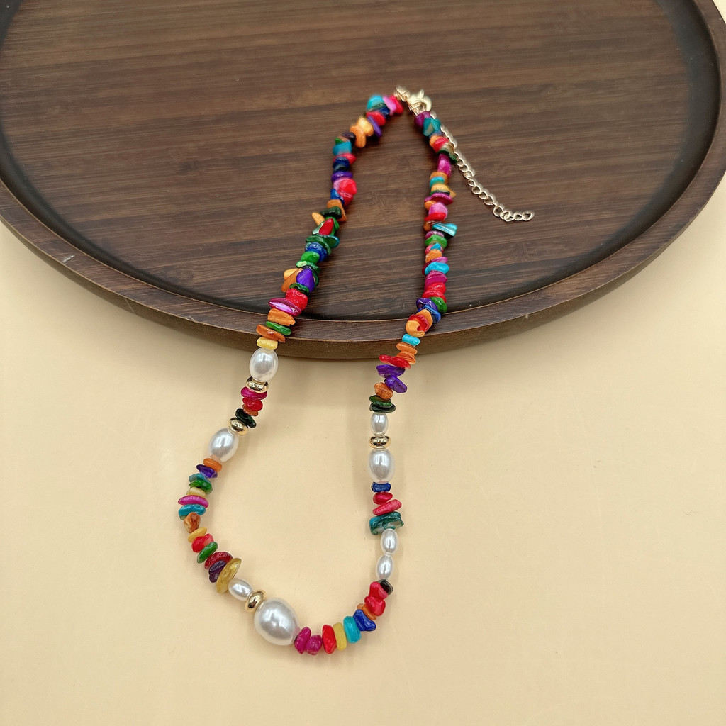 Detail Gelang Gaya Etnik Natural Gravel Choker Warna-Warni Bohemian Mutiara Rantai Tulang Selangka