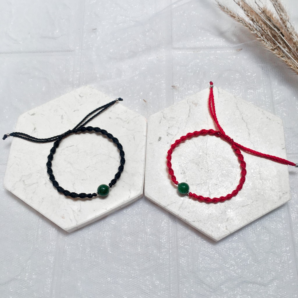 Gelang ini dibuat dengan bahan batu giok dipadukan dengan tali yang dirajut. Tali yang digunakan tidak luntur, kuat (tidak akan putus), tidak melar. Ukuran bisa disesuaikan, bisa dibesar kecilkan muat digunakan lingkar 15-21cm. Ringan untuk digunakan sehari-hari.