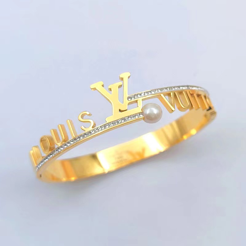 Detail Gelang Hypoallergenic Bahan Titanium Steel Warna Emas Untuk Wanita