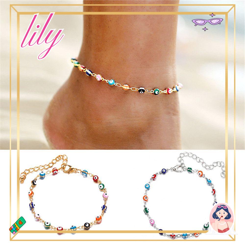 Detail Gelang Kaki Manik-Manik LILY Eyes Untuk Wanita Manik-Manik Pantai Silver Gold Bohemian