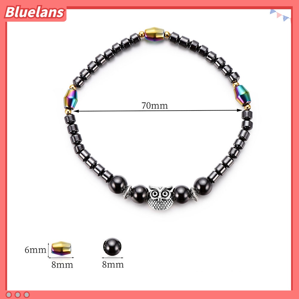 Detail Gelang Kaki Manik-Manik Hematite Tiruan Warna-Warni Bentuk Burung Hantu Untuk Wanita