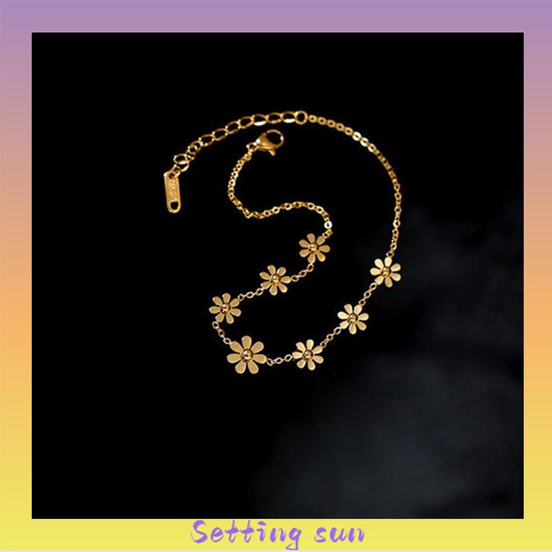 Detail Gelang Kaki Titanium Anti Karat Daisy Bunga Kamelia Emas 18k Perhiasan Wanita Korea TN