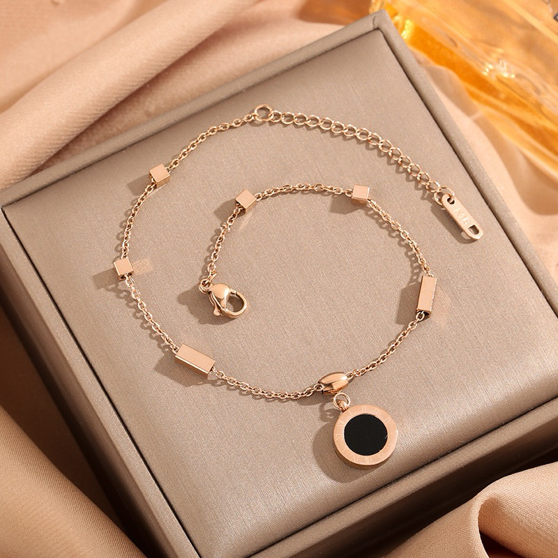 Detail gelang kaki titanium cantik dewasa romawi mata hitam diamonde
