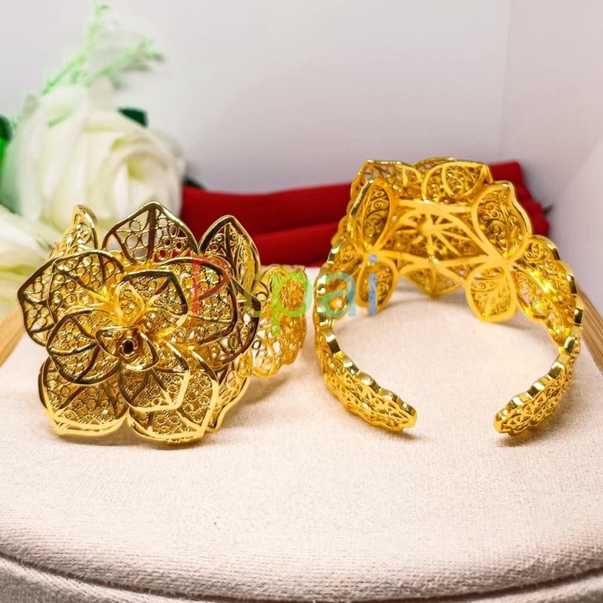 Detail Gelang Kendari xuping perhiasan lapis Emas 24k bunga bangle