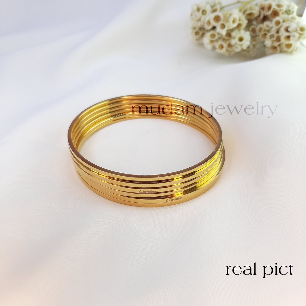 Detail Gelang Keroncong Titanium 1 pcs, 2 pcs, 3 pcs dan 6 pcs Warna Rose Gold, Gold dan Silver