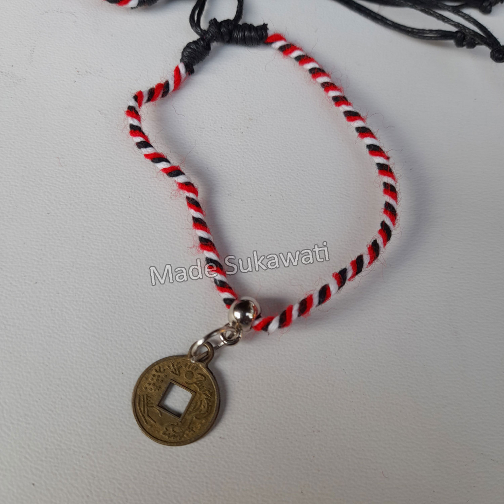 Harga untuk 1pcs, Kerajinan Gelang tridatu bahan tali tridatu, dengan variasi gantungan koin uang pis bolong,