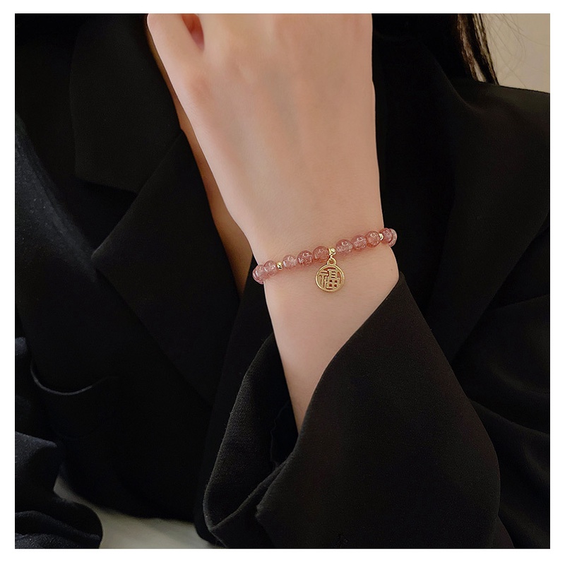 Gelang Kristal Strawberry ins Niche Desain Fu Karakter Gelang Pasangan High-End Perhiasan Tangan Pacar Gelang Kristal Perempuan Musim Panas