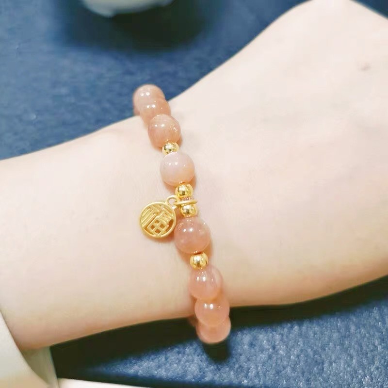 Detail Gelang Kristal strawberry Bentuk Bulat Warna Pink Untuk Wanita