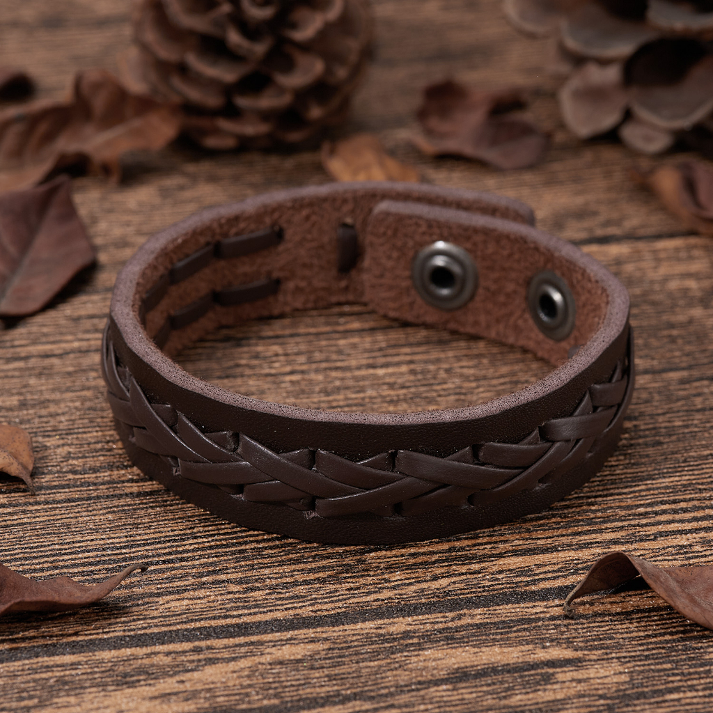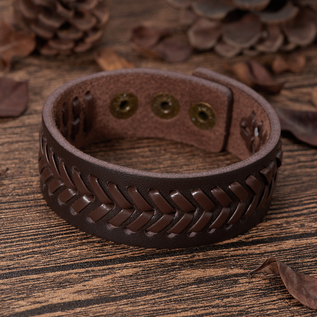 Detail Gelang Kulit Pria Lilit Gelang Kulit Bintang Ringan Lebar 1cm-2.4cm